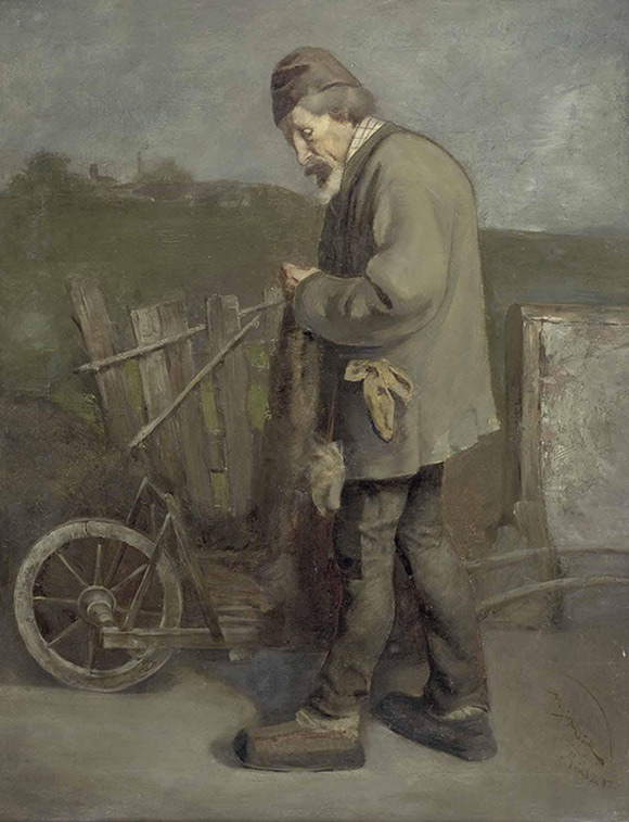 • Illustration : Aloïs Schornböck, Vieil Homme à la brouette et au sac de jute, 1887.