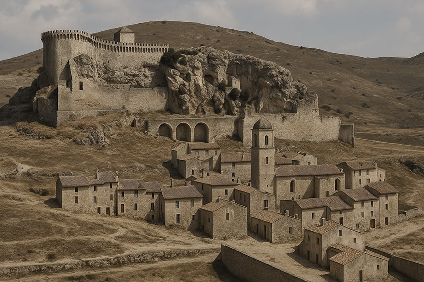 Reconstitution du village de Boulbon en 1720. © GénéProvence, 2025.