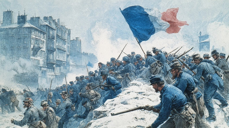 Les artilleurs de la Garde nationale et une centaine de soldats de la ligne s’avancèrent vers la barrière de la Grand-Rue, mais au moment où il parlementait avec ses défenseurs, 80 ou 100 coups de feu furent tirés sur eux. Ils furent assaillis en même temps par une grêle de pierres qui rejaillissait jusque bien avant dans la Grand-Rue. Avant même d’avoir pu armer leur fusil, les artilleurs et la ligne firent à leur feu à leur tour en reculant dans la direction du Grand-Puits.